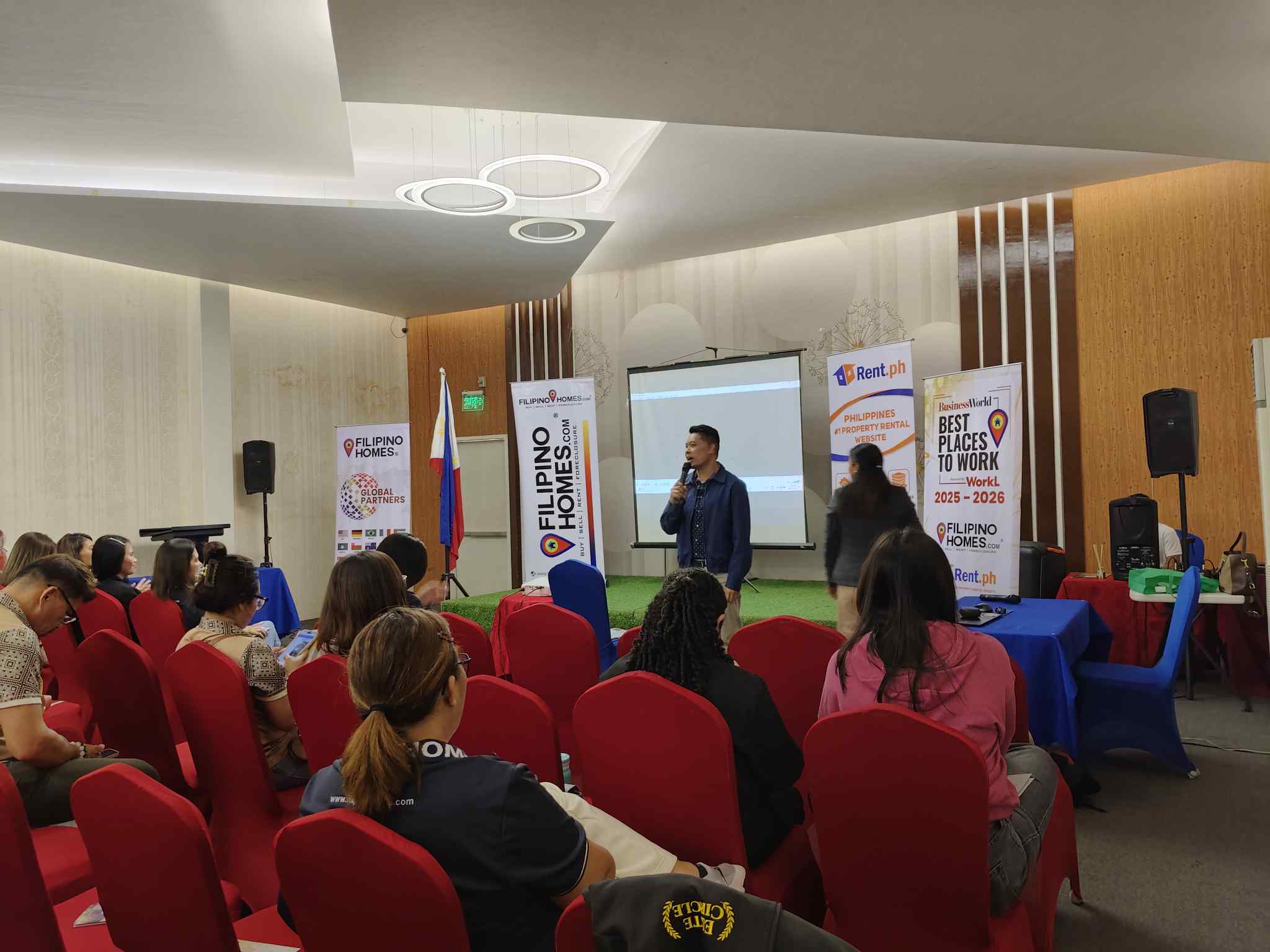 Filipino Homes has been running these knowledge seminars consistently across its network. The company positions itself as a tech-focused real estate platform—they've got an app available on Google Play and the Apple store, active social media presence, regular online updates. But the training side still happens face-to-face, agents in a room, going through materials together.